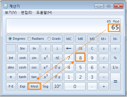 윈도우즈 계산기에서 나머지 구하는 방법