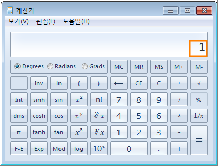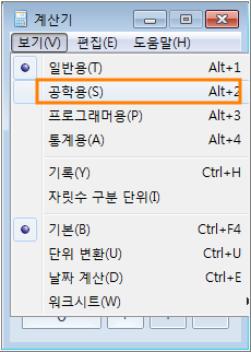 윈도우즈의 계산기를 실행시킨 다음 상단 메뉴 [보기]에서 [공학용]을 선택합니다.