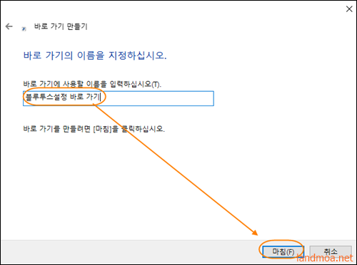 여기서는 [블루투스설정 바로가기]라고 기재하고 [마침]을 누릅니다.