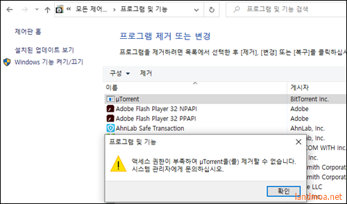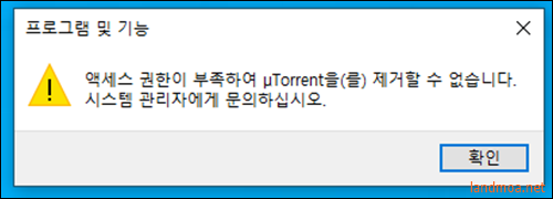 [엑세스 권한이 부족하여 uTorrent을(를) 제거할 수 없습니다] 라는 메시가 나오면서 더 이상 같은 프로그램은 삭제도 못하고, 새로 설치도 안되는 현상이 생깁니다.