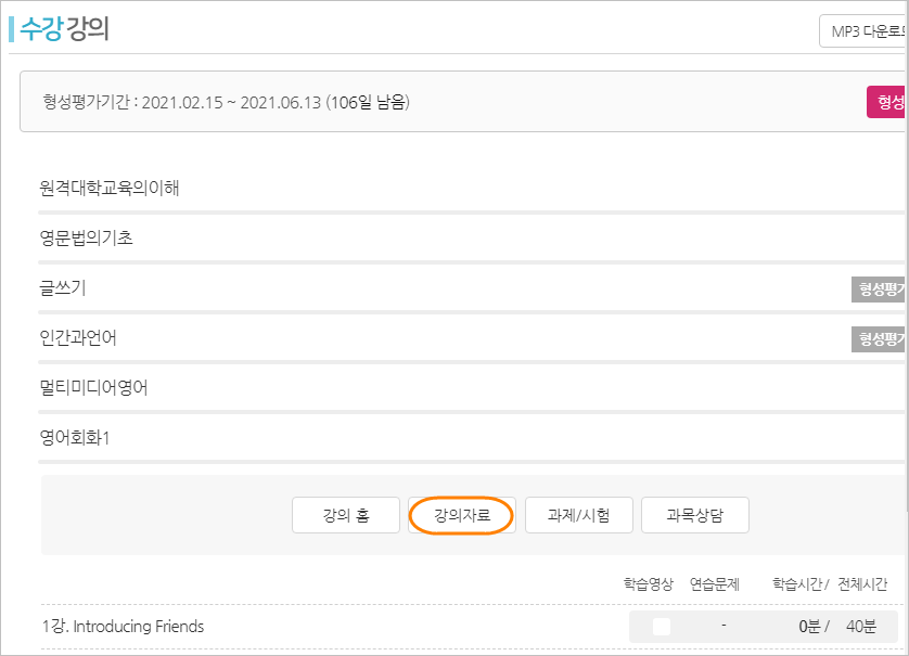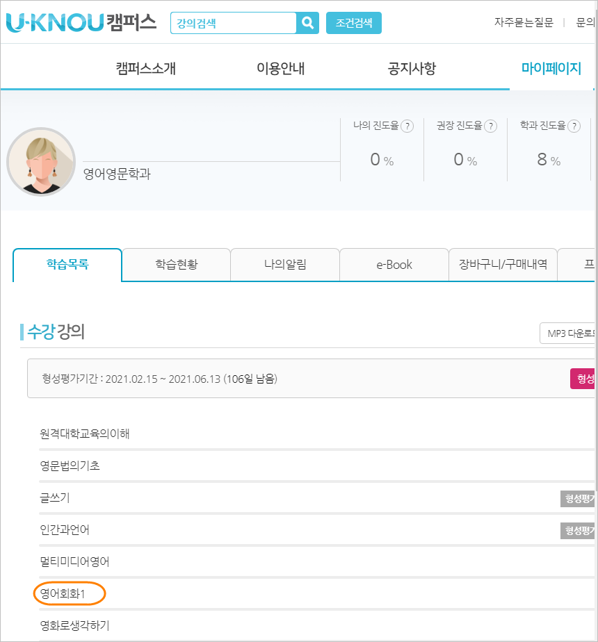 여기서는 [영어회화1]을 선택해 보기로 합니다.