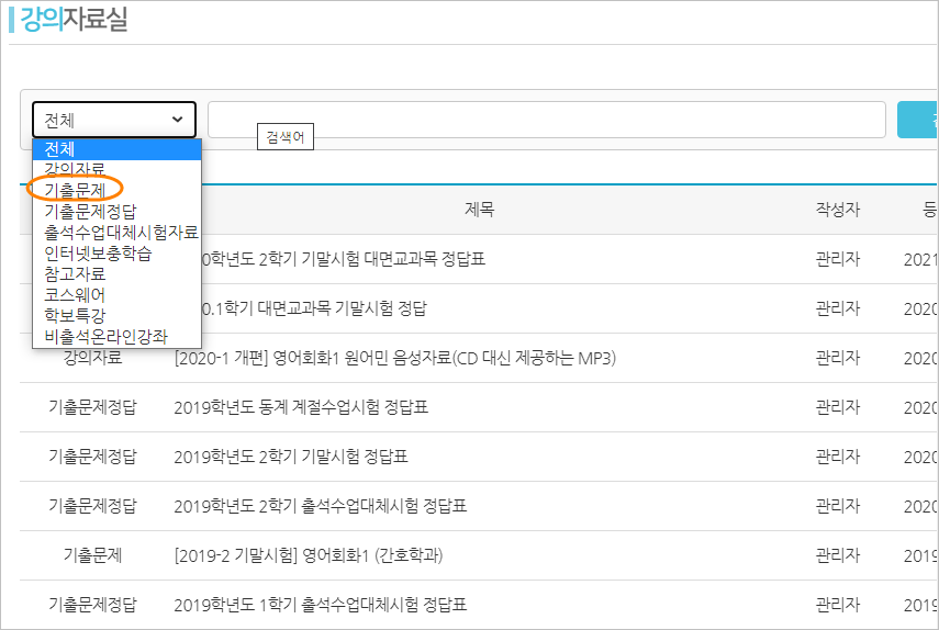 방송통신대학교 기출문제 보는 법, 기출문제 다운로드
