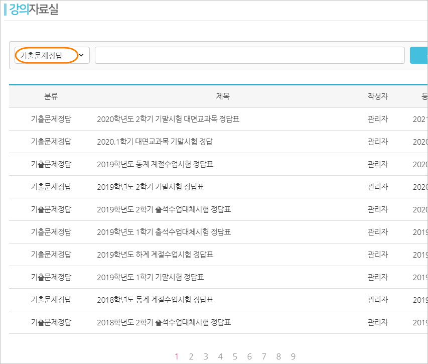 위처럼 [기출문제정답]을 선택하면 기출문제 정답만 목록으로 나옵니다.