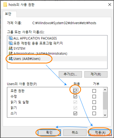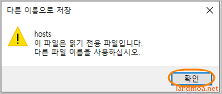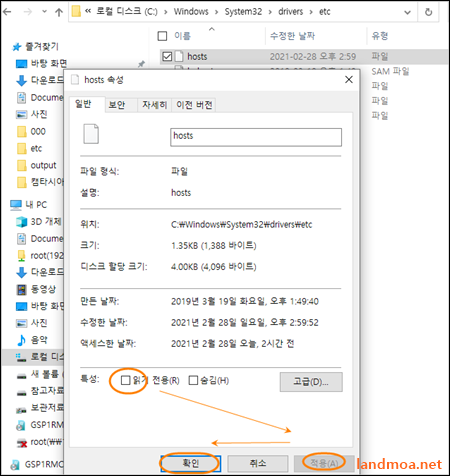 hosts 파일 읽기전용 해제, 수정불가 해결하는 방법