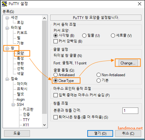 putty - 리눅스 원격 터미널 글자크기, 글꼴 바꾸기