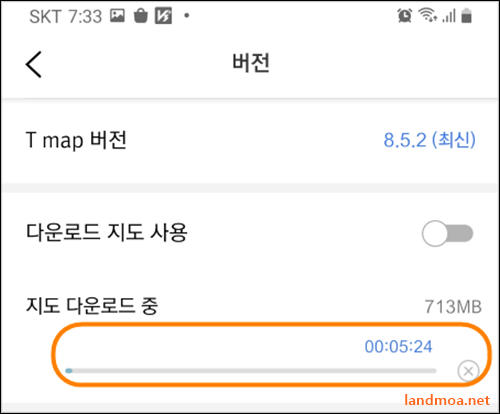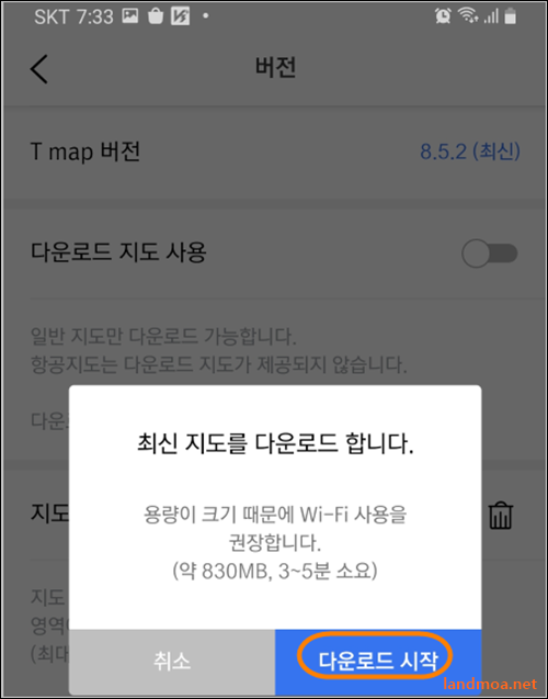 [다운로드 시작] 부분을 터치하여 지도 데이터를 다운로드 받습니다.