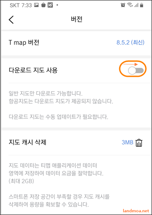 다운로드가 완료되면, [다운로드 지도 사용] 부분의 버턴이 활성화로 바뀝니다.