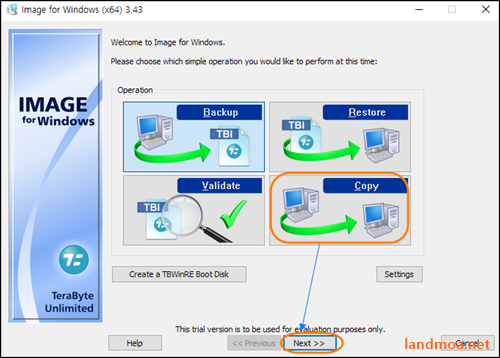 하단 우측의 [copy] 항목을 선택하고 [Next]를 클릭합니다.