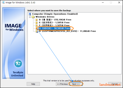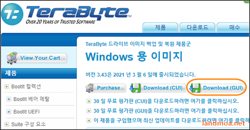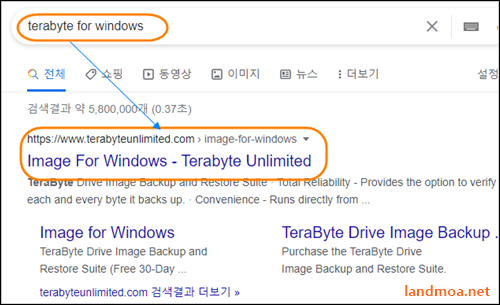 구글의 크롬에서 [treabyte for windows]를 검색합니다. 위처럼 검색된 목록 중에서 제일 상단에 위치하는 [Image For Wndows = Treabyte Unlimited] 부분을 클릭합니다.