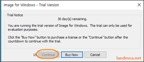 정식 구입하지 않은 상태라 30초간 카운트다운을 시작합니다.