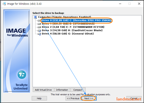 윈도우즈가 설치된 원본 드라이브를 선택합니다.