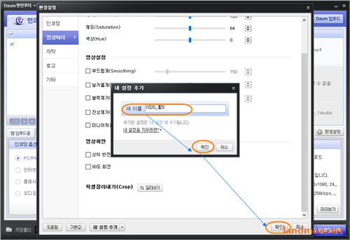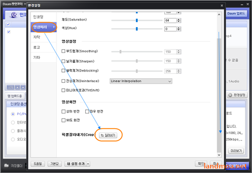 환경설정 창의 좌측메뉴 [영상처리]를 선택하고, 우측부분의 스크롤 바를 밑으로 내립니다.