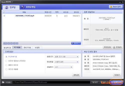 다음팟인코더 - 동영상 특정부분만 영역지정 저장하기, 자르기, 붙이기