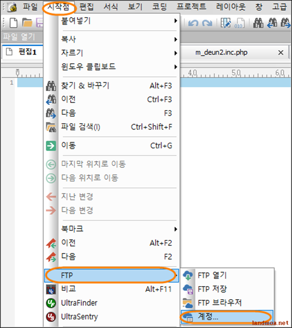 상단메뉴 [시작점] => [FTP] =>[계정]을 선택합니다.