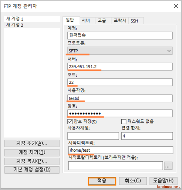 다 기재하셨으면 [적용] => [확인]을 클릭해 줍니다