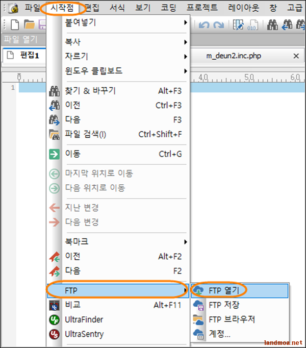 이번에는 다시 [시작점] => [FTP] => [FTP 열기]를 선택합니다.