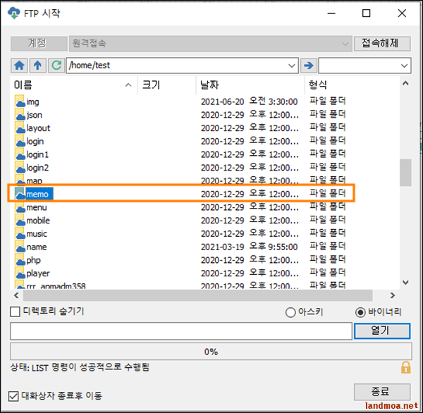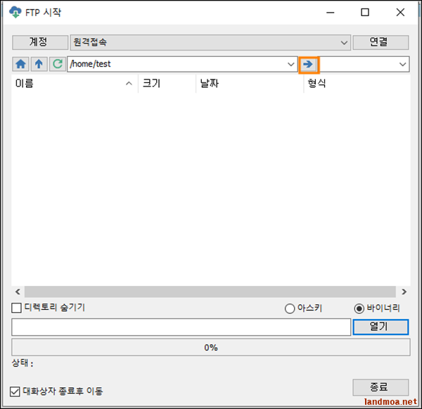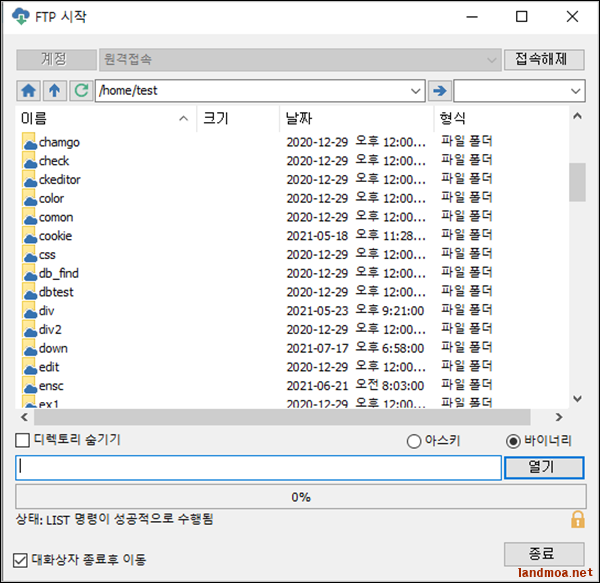 상단부분의 [화살표], 또는 하단 부분의 [열기] 버턴을 클릭하시면 디렉토리가 나열됩니다.