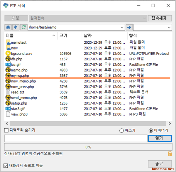 여기서는 mymsg.php 라는 파일을 선택해 봅니다.