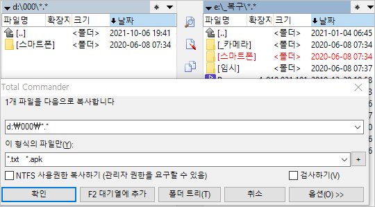 Total Commander 토탈커맨드 - 특정파일 또는 폴드 구조만 복사하기
