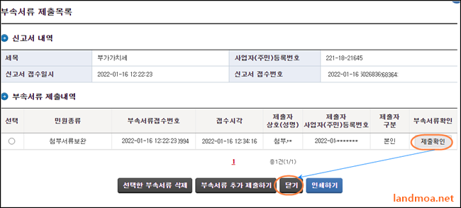 각 항목을 클릭하시면, 제출된 서류의 이미지 파일을 확인하실 수 있습니다. 혹 잘못 선택되었는지 궁금하시면, 클릭해 확인하셔도 됩니다. 좀 길지만 포스팅을 따라 하시면, 유튜브의 부가세는 쉽게 신고하실 수 있으리라 봅니다.
