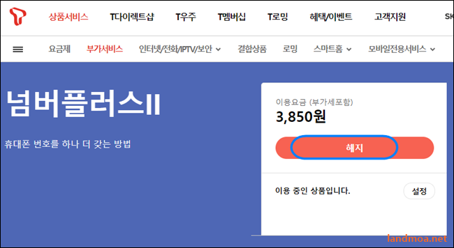 [넘버플러스ii] 서비스에 가입한 경우는 위처럼 요금내역이 나옵니다.