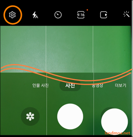 카메라 촬영 화면에서 [설정]을 선택합니다.