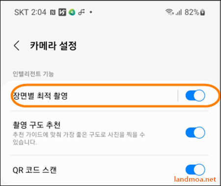 설정화면에서 [장면별 최적촬영]이 있어야 스캔이 가능한 것으로 봅니다. 갤럭시 9 이상이라야 위 옵션이 있는 것으로 보입니다. 자신의 스마트폰에서 위 기능이 있는지 확인해 보셔야 합니다. 별다른 앱 설치로 가능할 것으로도 보이지만, 여기서는 생략합니다.