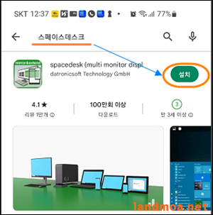 구글의 play store 등에서 [스페이스데스크]를 찾아 설치합니다.