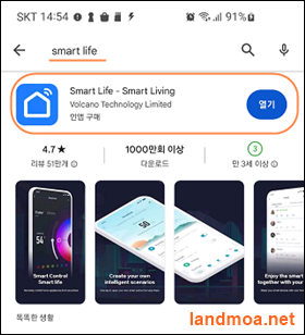 제품 설명서에 있는 QR코드를 이용하거나 구글PLAY에서 [smart life]라는 앱을 핸드폰에서 다운로드 받아 실행을 시킵니다.