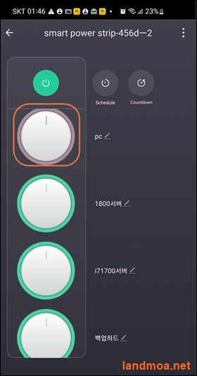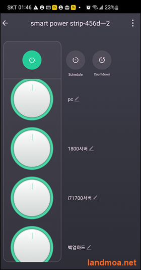 핸드폰에서 콘센트에 대응하는 위치별 명칭을 붙일 수도 있고, 수동으로 제어할 수도 있습니다. 지방으로 출장을 가도 와이파이가 연결된 곳이면 원격으로 전원을 켜거나 끌 수 있는 좋은 시스템입니다.