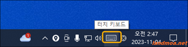 작업표시줄 우측 부분에보시면, 위 그림처럼 키보드 모양의 아이콘이 보입니다. [키보드] 아이콘을 클릭합니다.