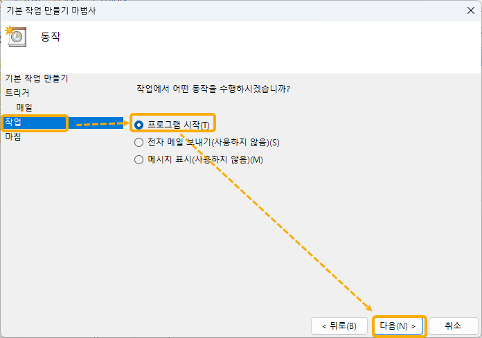 해당 시간이 되면 프로그햄을 실행하라는 것이 됩니다.