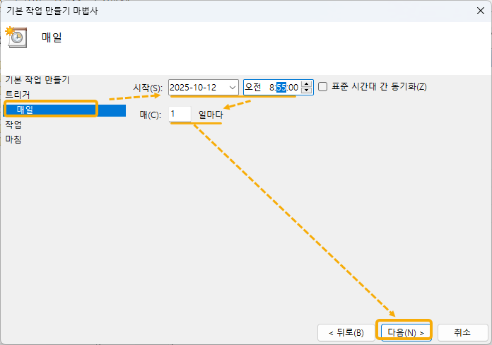기본인 1을 선택하면, 날마다 실행한다는 뜻이 됩니다.